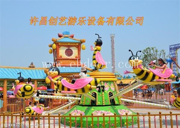 '自控小蜜蜂'是一款将旋转与升降完美结合在一起的游乐设备,'自控小蜜蜂'是由机械、气动与油压和电气系统组成,是一种绕垂直轴中心旋转、升降自由的游乐设备。它具有高空驾驶之惊险,自由之悠闲,是一种游客可以自己控制升降的现代游乐设施,小蜜蜂围绕中心大蜜蜂旋转,并逐渐上升,游客在飞行中紧握操纵杆随意升降,互相追逐、射击,形象逼真的空战声光效果,使游客能充分体验到飞机在空中翱翔的穿越之感,而机臂的牵引和离心力的冲击,又使乘客在安全的环境里尽情享受飞翔的快感和刺激,令人乐而忘返,该游乐设备不但性能优异,操作简单,而且有着新颖的造型、华丽迷人的彩灯装饰,逼真刺激的空战音响效果,深受广大游客的喜爱。旋转小蜜蜂游乐设施设备也叫自控小蜜蜂,它可爱卡通的形象外观更引人注目。这款设备属于旋转类的设备,蜜蜂在其旋转的同时又伴随着身体的上升和下降,坐在上面犹如在飞翔一般,惬意轻松和快乐!